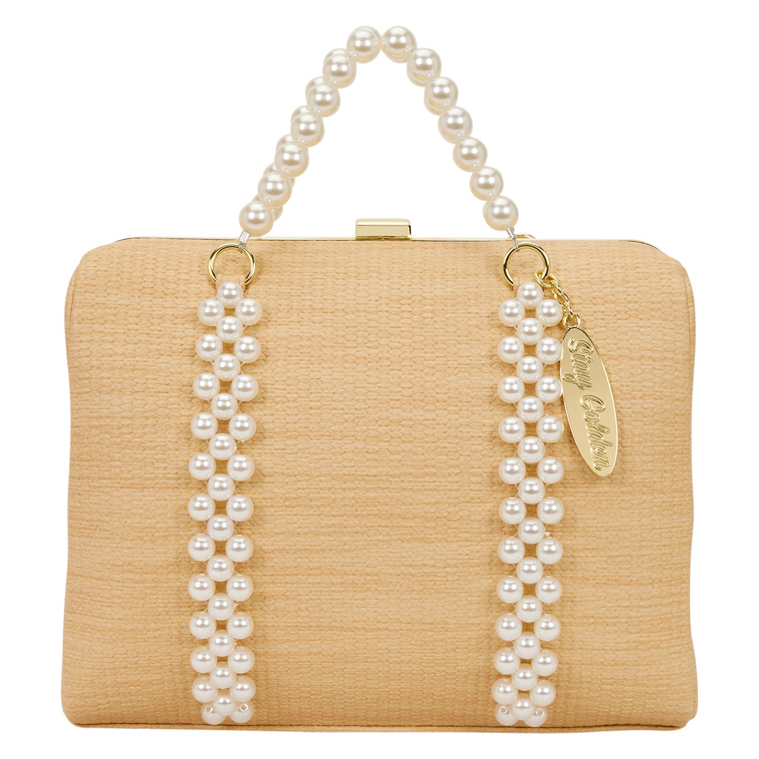 This bag is inspired by Sophia's handbag. You'll find wicker faux leather, beads running up the sides, and a beaded handle. You'll also find a metal charm that says "Stay Golden."